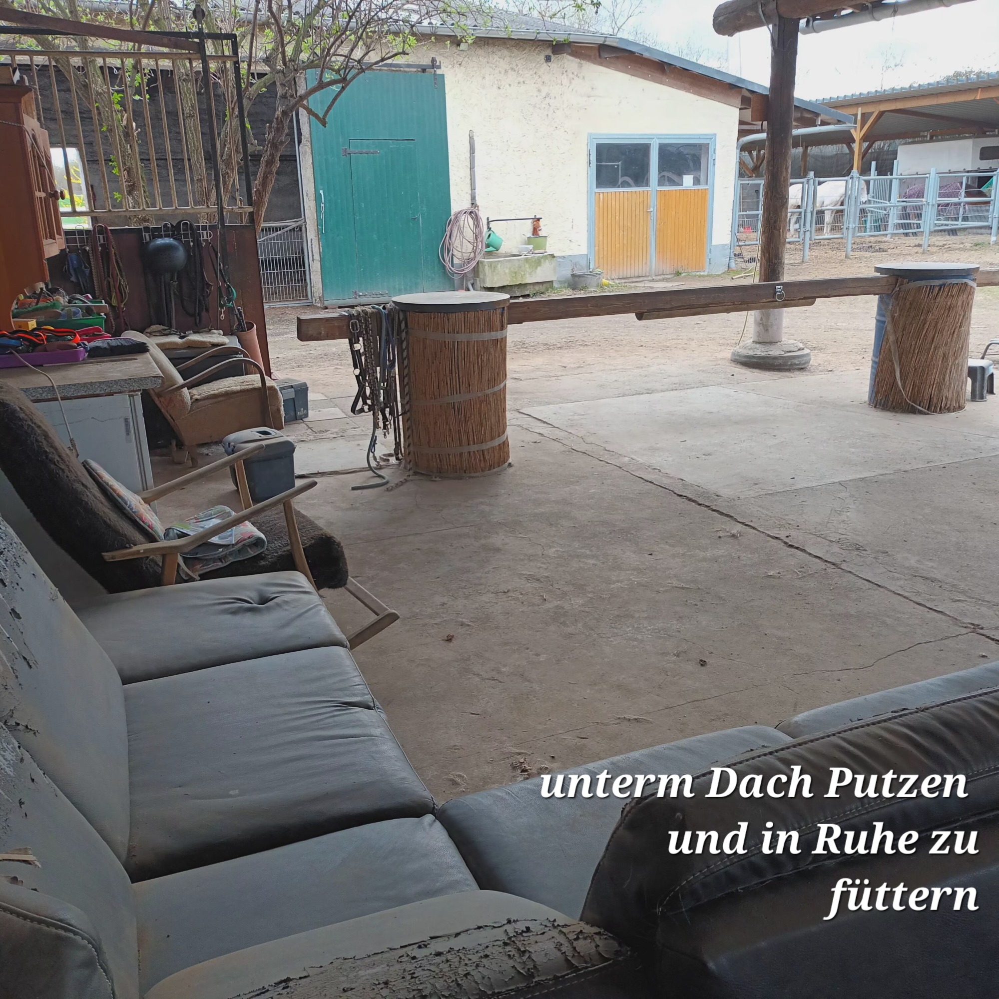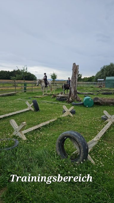 Dazu für die Pferdehalter*innen: Sattelkammer, überdachter Putz- und Anbindeplatz, Toiletten, Roundpen (beleuchtet), kurze Wege zum Pferd, Trainingsgelände mit Aufstieghilfe, Parkplätze, moderate Preise.